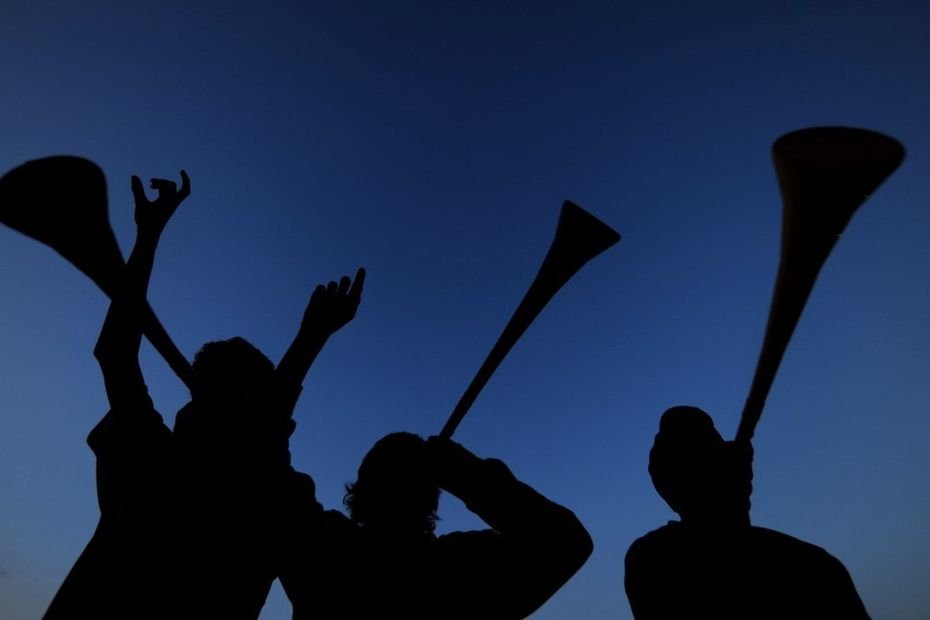 D’habitude utilisées par les supporters dans les stades de foot sud-africains, une douzaine de ces trompettes ont été distribuées aux…